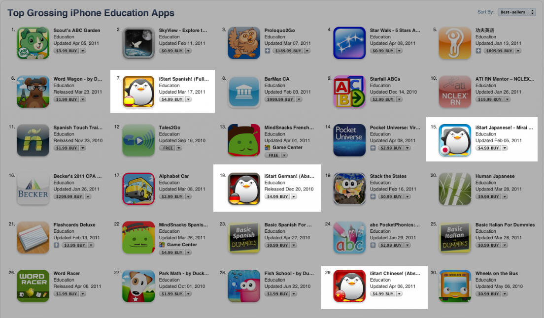 A series of language learning apps featured by Apple, reaching top rankings in the education category.